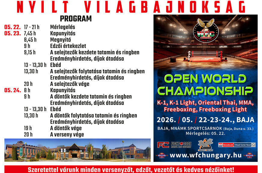 WFC World Championship – K-1, Freeboxing, Freeboxing Light, K-1 Light, MMA, Oriental-Thai📅 Date and venue